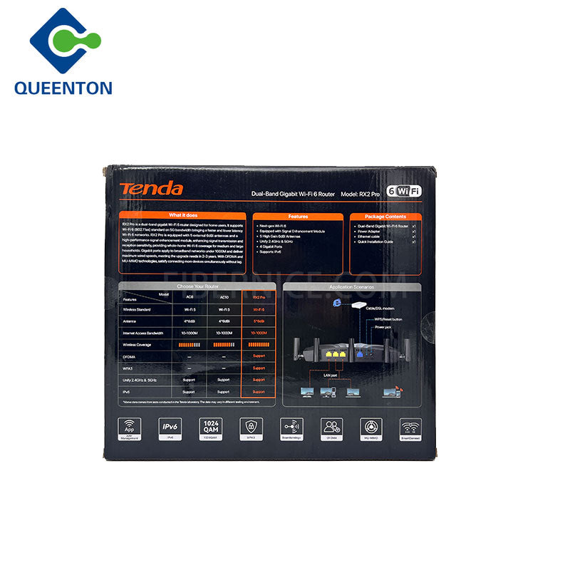 | Features | IPTV IPv6 Unify2.4 GHz&5 GHz Smart Power Saving LED Switch Bandwidth Control Guest Network System Log MAC Clone OtherFeatures Broadband Account Mipration Backup& Restore Confieurations Support Automatic Access Detection |